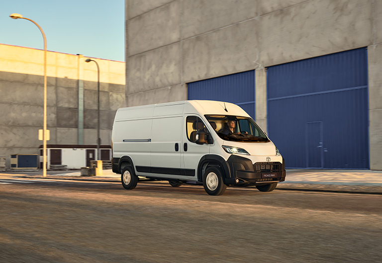 Eleganta och rymliga Proace Max har plats för tre personer och har en bekväm kupé där du kan arbeta eller koppla av. Toyotas ProTouch-multimediasystem är navet i bilens intuitiva uppkoppling och styrs via en högupplöst 10-tums pekskärm. Proace Max kommer med den senaste Toyota Safety Sense som innehåller en rad förarassistanssystem och säkerhetssystem som stöttar dig som förare och gör körningen enklare och säkrare. Den största varianten, Proace Max Electric (L4H3), har en lastkapacitet på 17 m³. Lastning och åtkomst förenklas tack vare fullhöjdsdörrar och en praktisk fyrkantig öppning med låg tröskel. Bakdörrarna går dessutom att öppna 270 grader vilket ytterligare underlättar in- och urlastning. Utrustad med den senaste batterielektriska tekniken ger det en räckvidd på upp till 42 mil*. Att ladda batteriet till 80 % med snabbladdningssystem tar cirka 55 minuter.